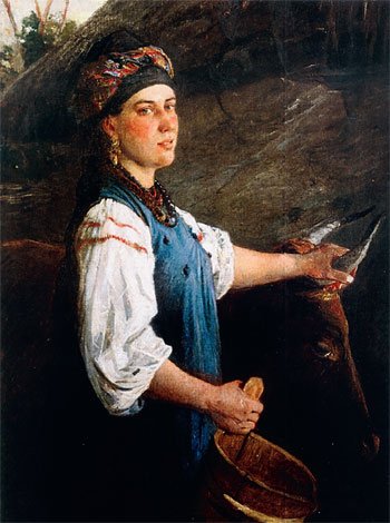 Соприкоснувшись с подлинной крестьянской жизнью на хуторе, Ге создал и свой, непохожий на идеализированный народнической мыслью образ человека из народа. На его портретах того времени помимо родных и знакомых крестьяне: мужики, девушки, дети. По меткому наблюдению исследователя творчества Ге Т. Л. Карповой, в своих крестьянских моделях Ге отмечает их «косноязычие». Психолог Ге не может прочесть то, что силятся сказать его модели, их язык невербален. Как сильно отличаются эти образы от портретной галереи писателей и представителей интеллигенции, которых Ге писал в Петербурге, в которых, при сдержанности поз и почти полном отсутствии жестов, ощутимы большая душевная работа, целые миры. Эта социальная, классовая дистанция, которую передвижники старались не замечать или камуфлировать, у Ге превратилась в бездну.